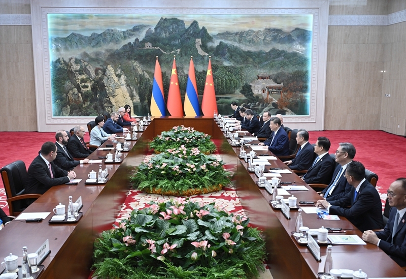 8月31日上午,国家主席习近平在天津迎宾馆会见来华出席2025年上海合作组织峰会和纪念中国人民抗日战争暨世界反法西斯战争胜利80周年活动的亚美尼亚总理帕什尼扬。