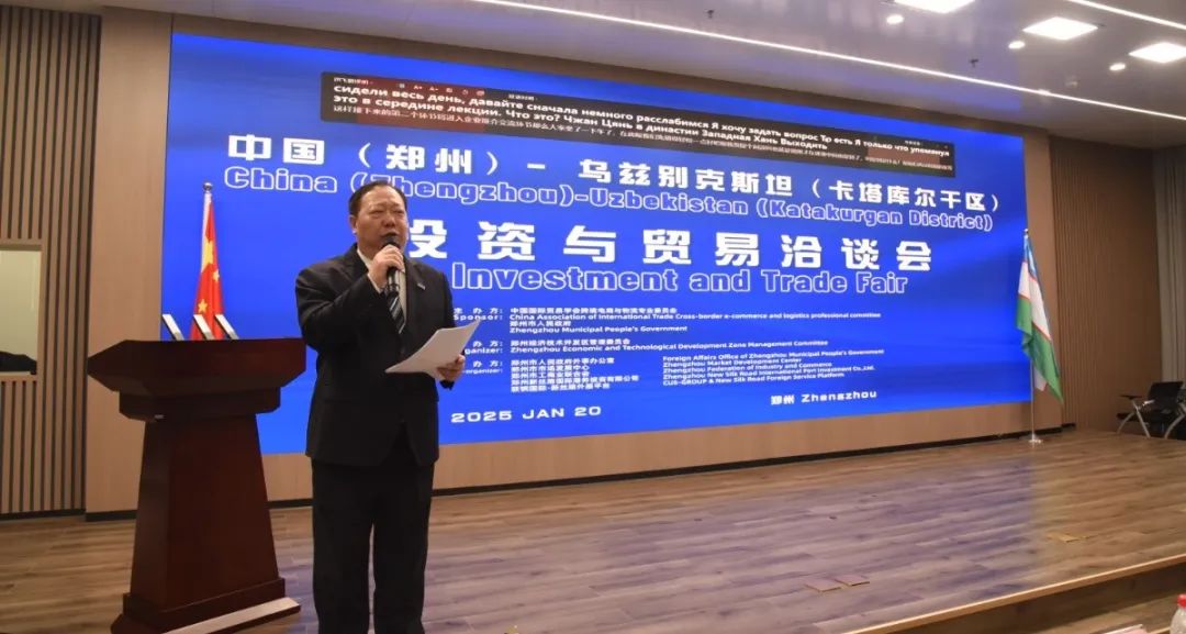 1月20日,由中国国际贸易学会跨境电商与物流专业委员会与郑州市人民政府联合主办的“中国(郑州)—乌兹别克斯坦(卡塔库尔干)投资与贸易洽谈会”在郑州市经开区中欧班列调度指挥中心会议室圆满举行。此次活动旨在深化河南省郑州市与乌兹别克斯坦撒马尔罕州卡塔库尔干区之间的经贸合作关系,并探索更多合作机遇。