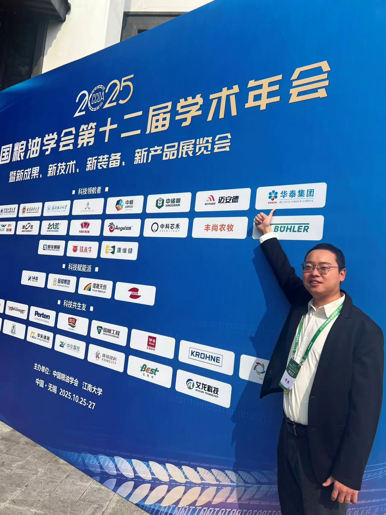 2025年10月25日至27日,由中国粮油学会、江南大学联合主办的中国粮油学会第十二届学术年会暨新成果、新技术、新装备、新产品展览会在无锡成功举行。本届盛会以“粮优食安,科创融合,健康未来”为主题,搭建起学术交流、科普宣传与成果推广相融合的多元化平台,中国工程院院士陈坚、李培武等行业权威专家受邀作特邀报告,聚焦粮油产业高质量发展关键议题。华泰智能装备集团总经理闫博以“科技领航者身份”受邀参会,全方位展示企业技术创新成果与发展实力。