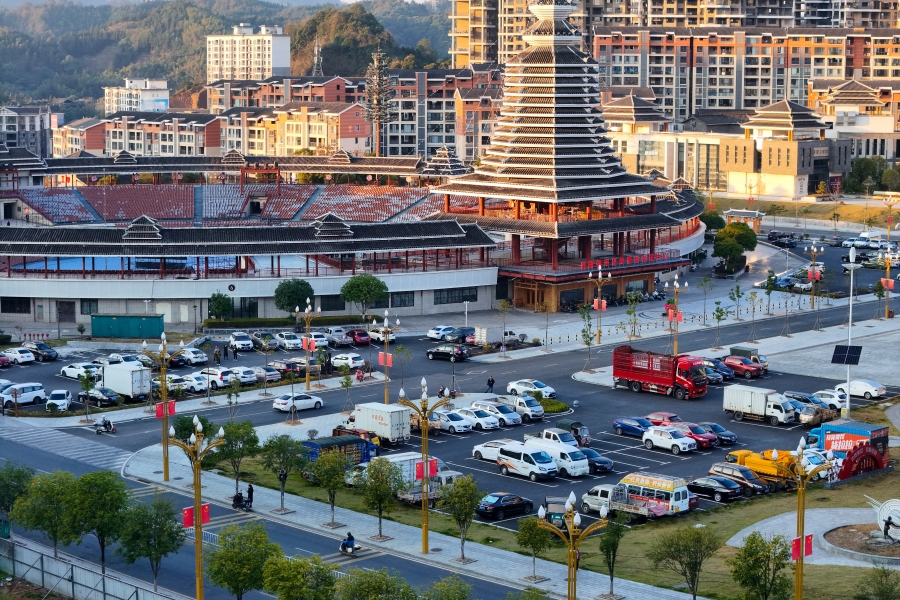 11月24日,通道侗族自治县萨岁广场免费停车场秩序井然。近年来,该县通过实施免费停车、村村通公交等惠民举措,切实解决群众出行难题,提升民众获得感。李尚引 摄(湖南图片库)