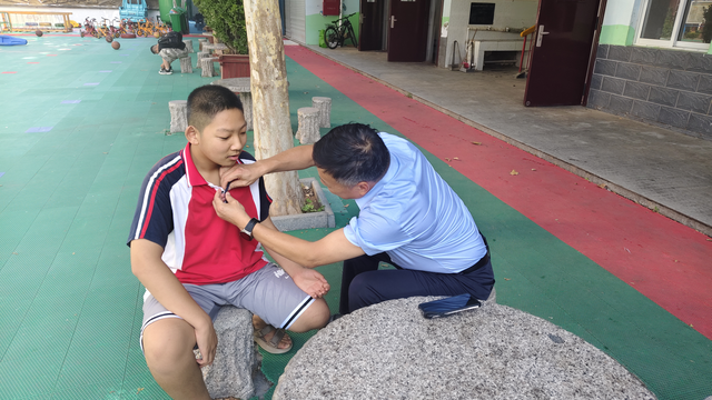 2016年,已是滑县“名校长”的庞新赞接到调任特教学校的通知。面对一片空白的特殊教育领域,他以共产党员的担当迎难而上,苦学手语与特教理论,挨家挨户家访摸清学生情况。学生癫痫发作时,他毫不犹豫地将手伸进孩子口中防止咬伤舌头,手指留下深深牙印也毫无怨言。他说:“孩子们一声含糊的‘校长好’,就能扫光所有疲惫。”