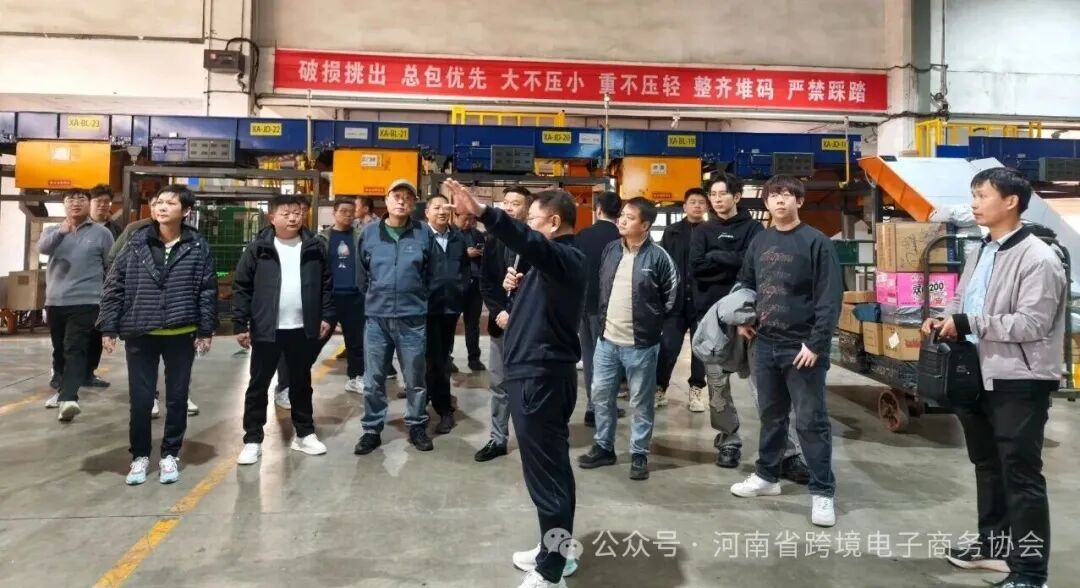 下午3时许,河南省跨境电子商务协会会长秦绪波带大家走进中国邮政(郑州)国际邮件重要口岸、邮区中心局及职工活动中心,实地探访跨境物流关键节点 ——从国际邮件处理全流程,到智能物流运作体系,直观感受邮政跨境服务的硬实力。