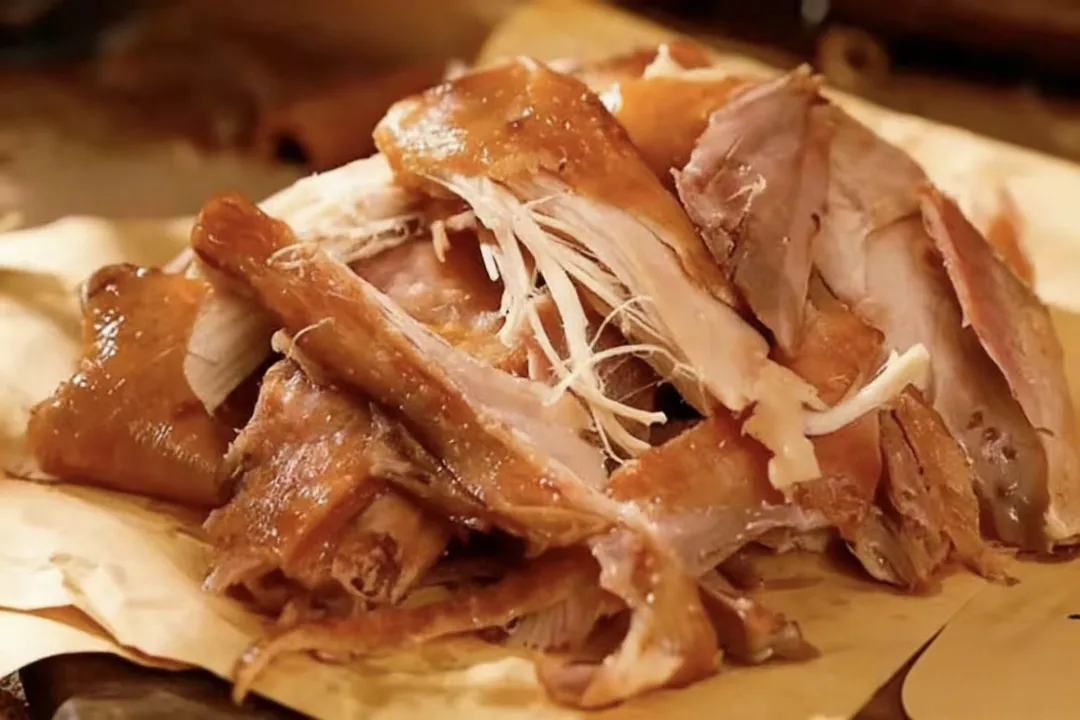 笑声混着烧鸡香在车间里漾开,穿着蓝大褂的女工们凑在一起,你一块我一块尽情地分享着,一口烧鸡一口酒,吃着那叫一个得劲;有人把蹭在嘴角的卤汁儿,用手背一抹,眼角的笑纹里都是满足。