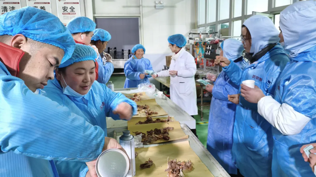 腊月的风裹着年味儿吹进“吃可得”的生产车间,深夜完成生产任务的工人们,在消毒水的清冽中,充斥着肆意蔓延的烧鸡香,他们手里拿着刚出锅的益生菌烧鸡,却暖得能焐热指尖。
