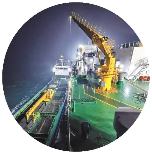 小图:11月22日晚,“国信1号2-2”在指定海域进行鱼苗吊装入舱作业。